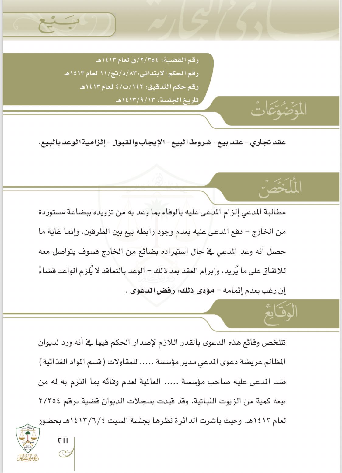 مختارات عدلية On Twitter حكم قضائي في الوعد بالتعاقد طالب المدعى بإلزام المدعى عليه بالوفاء بما وعد به في البيع التسبيب إن مجرد الوعد بالشيء لا يلزم الواعد